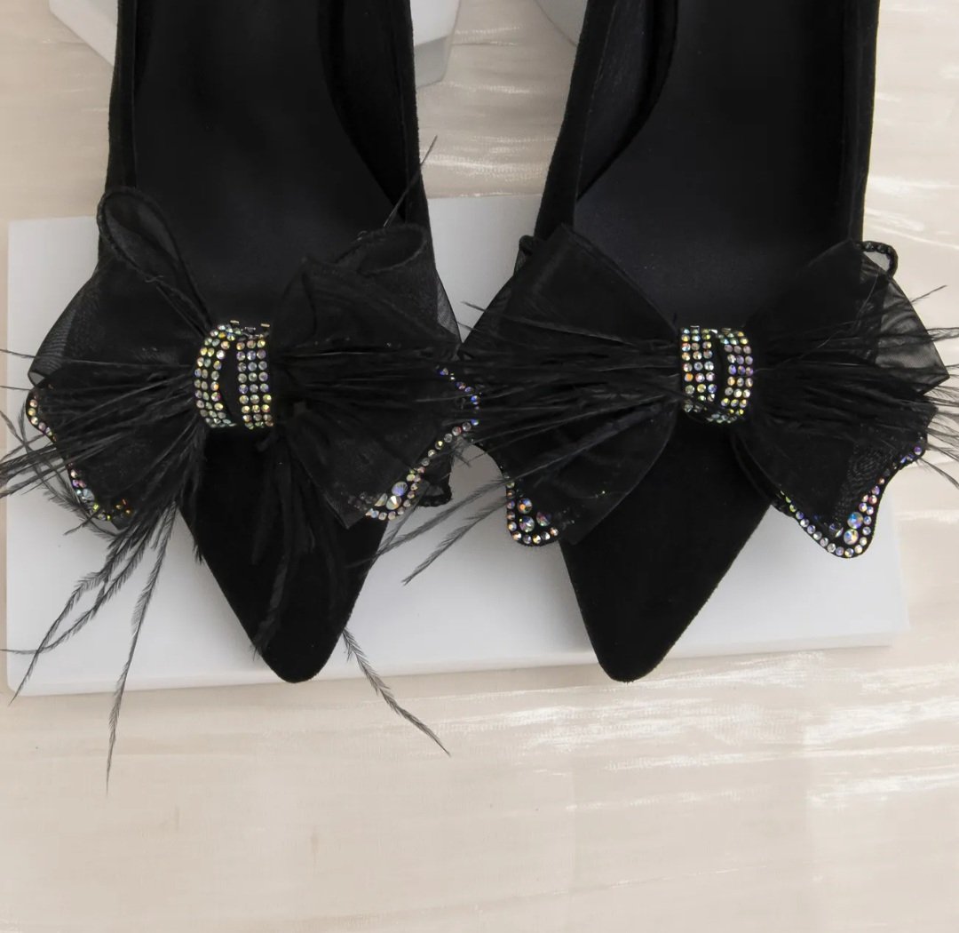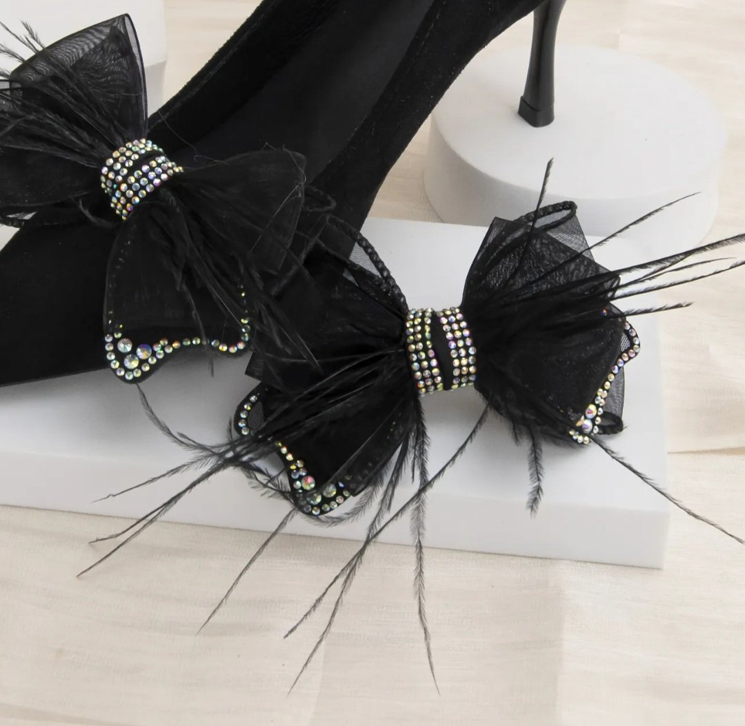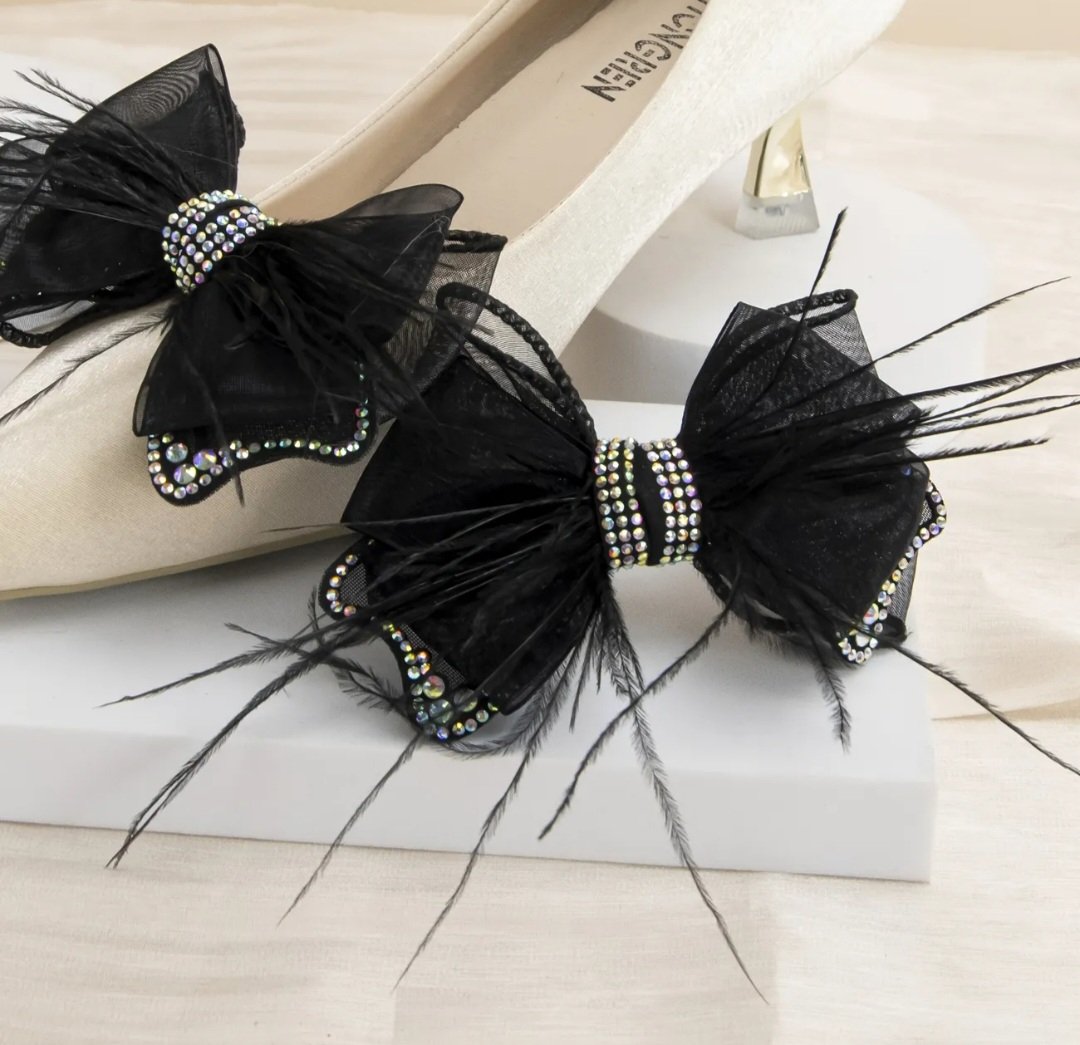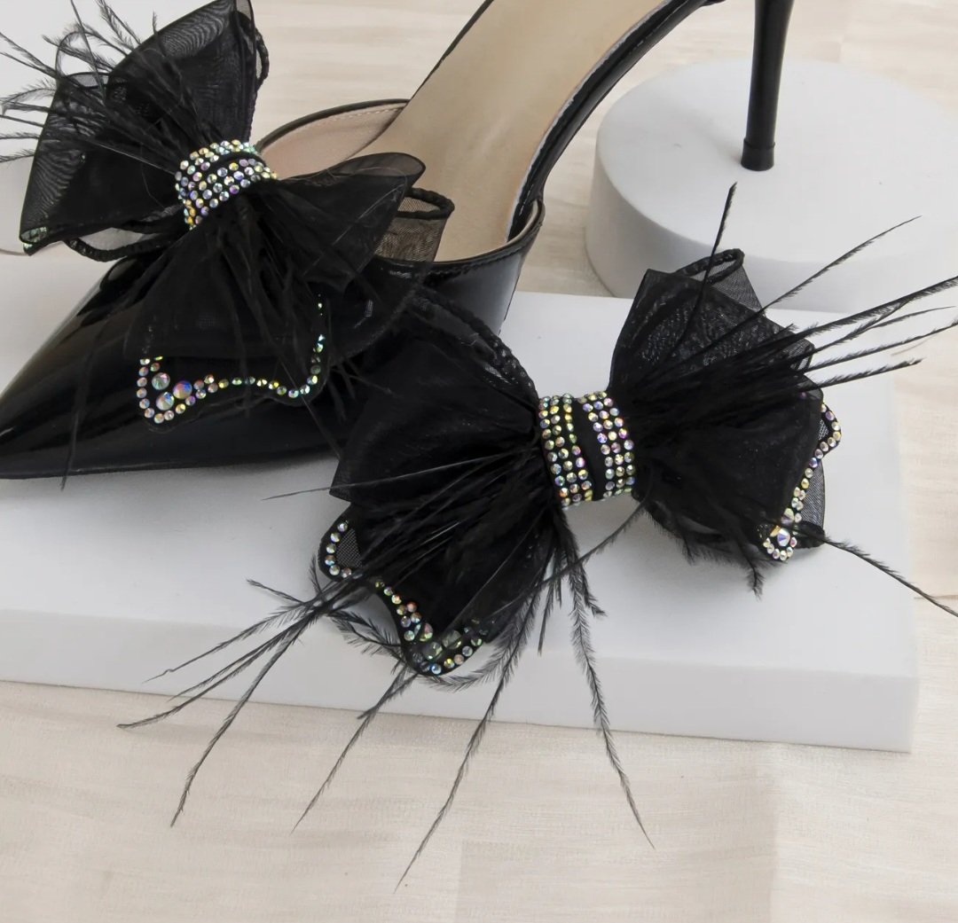 Аксесоар за обувки черни панделки