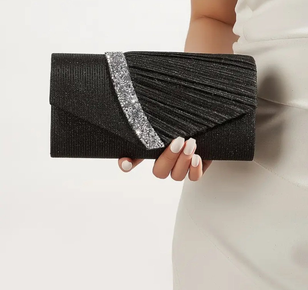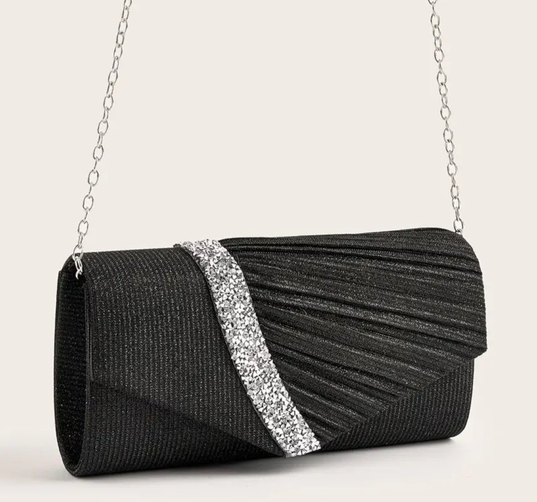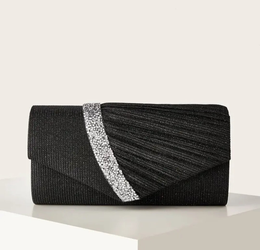 Вечерна чанта в черно със сребриста лента