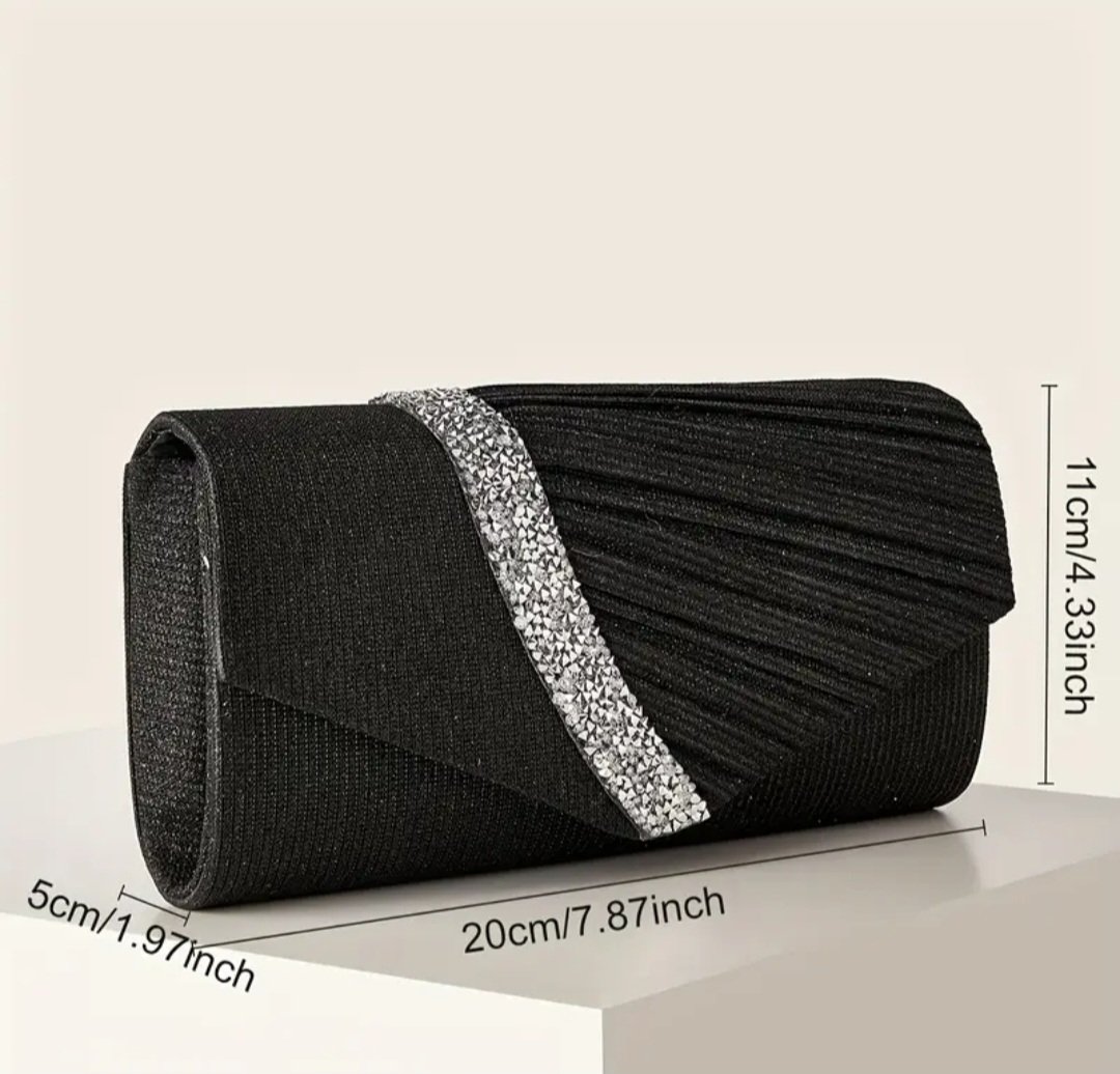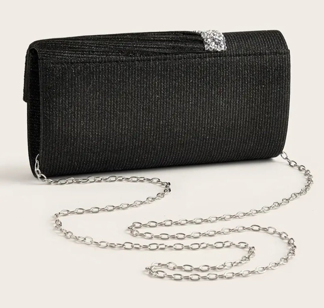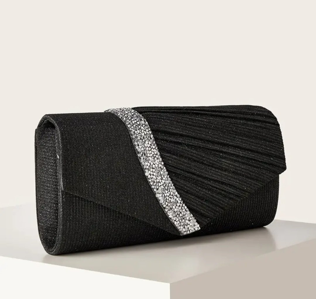 Вечерна чанта в черно със сребриста лента