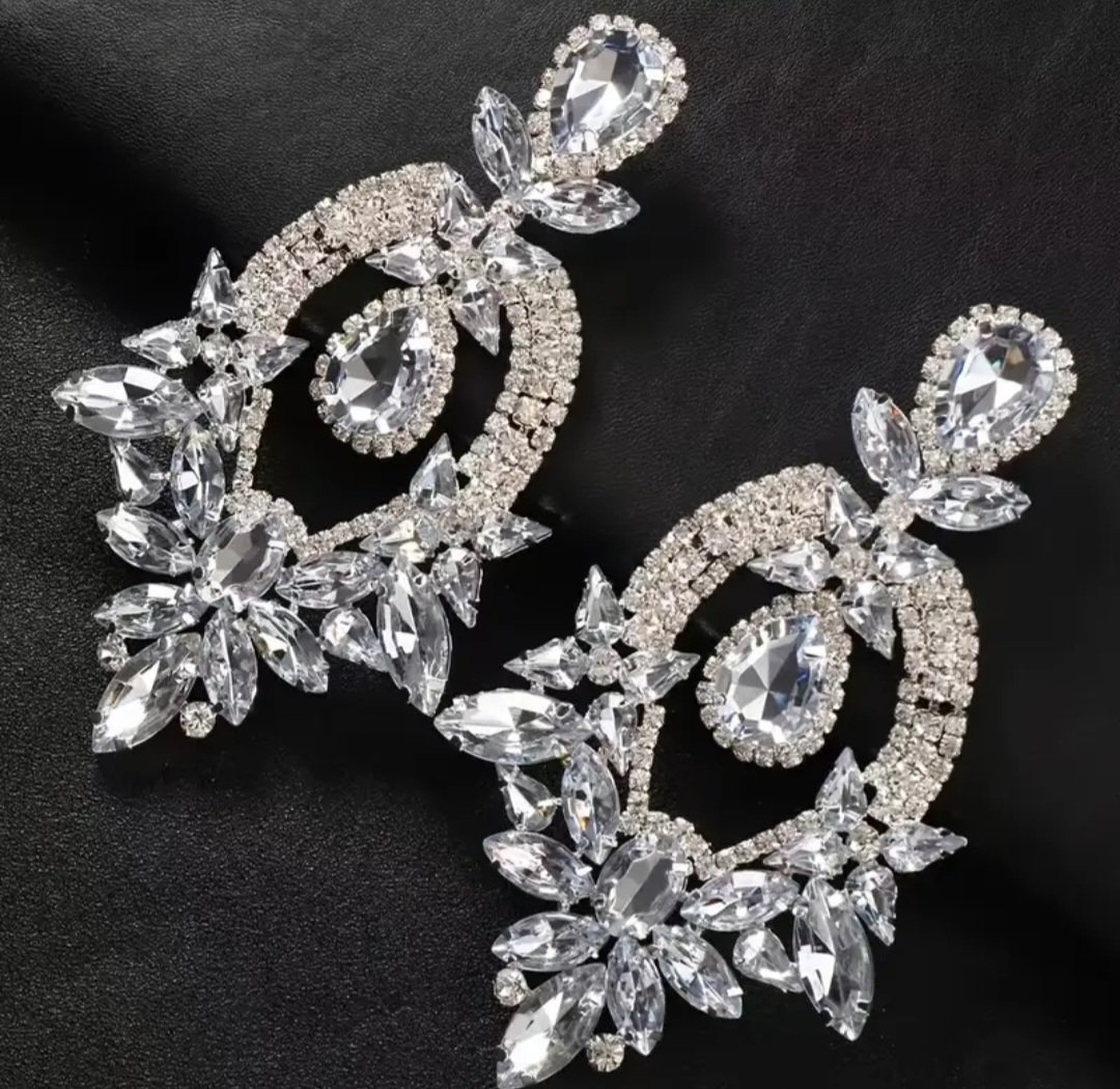Големи обеци с бели камъни