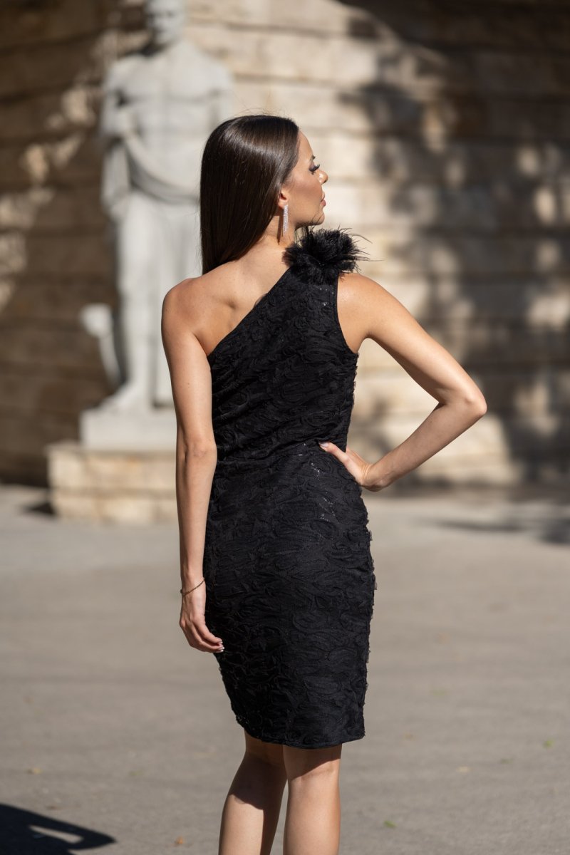Черна къса вталена рокля с едно рамо